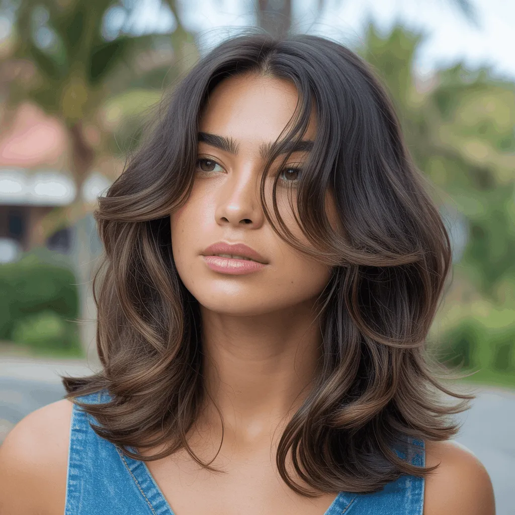 Las ondas naturales potencian la textura del shag mullet, creando un estilo dinámico y moderno.