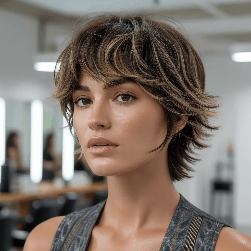 El shag mullet corto es perfecto para quienes buscan un estilo moderno y fácil de mantener.
